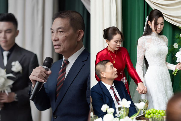 Tiếp đó, ông Đỗ Văn Tào – bố đẻ của Đỗ Thị Hà cũng xúc động phát biểu trong ngày trọng đại của hai con. “Hai con đã yêu nhau, đến hôm nay được hai bên gia đình đồng ý cho các con xây dựng hạnh phúc. Trong ngày trọng đại, đại diện gia đình nhà gái nhất trí với chia sẻ từ nhà trai. Tôi cảm ơn các cô, chú bác, chúc hai họ, gia đình mạnh khỏe, hạnh phúc”, bố đẻ Đỗ Thị Hà chia sẻ.