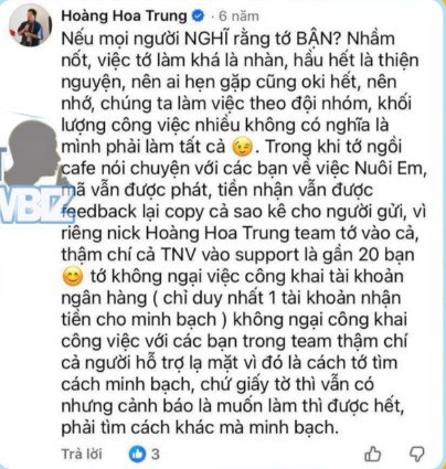 Tối 9/12, Fanpage chính thức của Dự án “Nuôi em” (Nuôi em) đã có thông báo về việc tiếp thu phản hồi và lộ trình hành động của dự án.