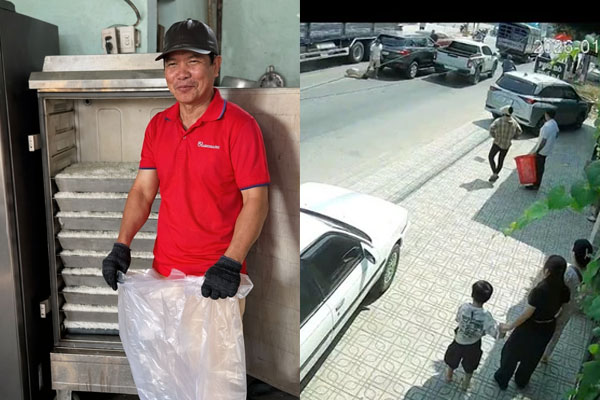 Hình ảnh giản dị của tài xế khi đang chuẩn bị bữa ăn thiện nguyện (được biết bác là một thành viên của bếp ăn Yêu Thương)