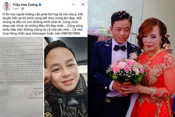 Theo nội dung thông báo vào ngày 27/1, ông Triệu Hoa Cương cho biết hai người đã “hết duyên, hết nợ” và lựa chọn dừng lại trong êm đẹp. Ông cũng gửi lời chúc sức khỏe và mong mỗi người sẽ có con đường riêng phù hợp hơn trong chặng đường sắp tới. Dòng trạng thái nhanh chóng nhận được nhiều bình luận trái chiều từ cộng đồng mạng, bởi đây từng là một trong những cặp đôi có sự chênh lệch tuổi tác lớn nhất từng được công chúng biết đến.