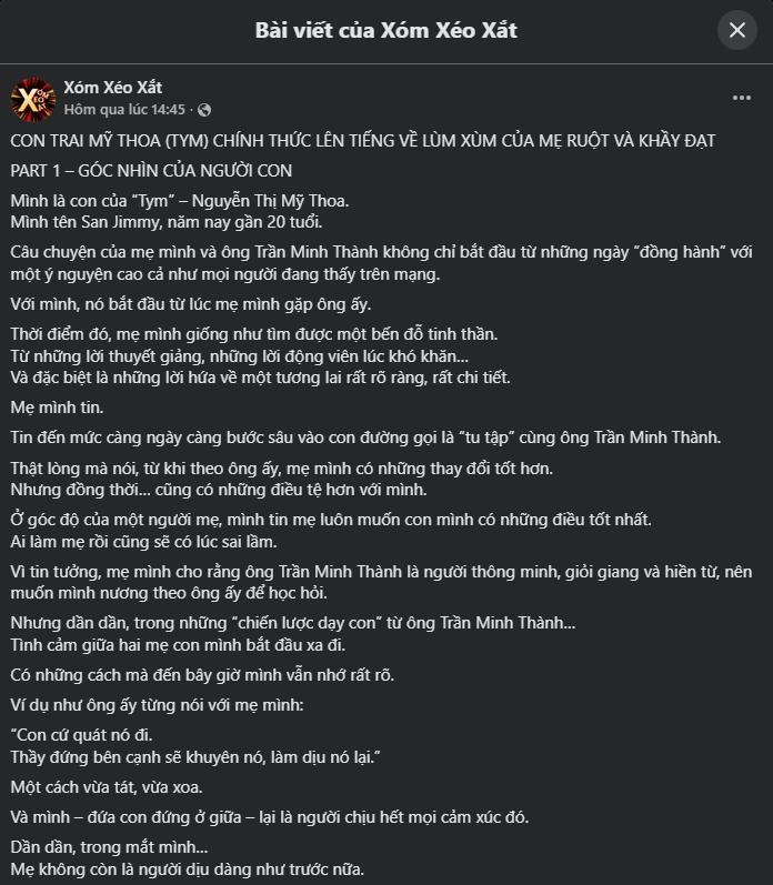 CON TRAI MỸ THOA (TYM) CHÍNH THỨC LÊN TIẾNG VỀ LÙM XÙM CỦA MẸ RUỘT VÀ KHẦY ĐẠT