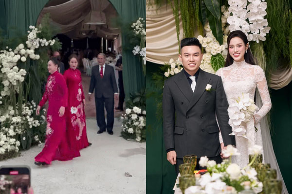 Theo đó, phu nhân Tập đoàn Sơn Hải đã mang cơi trầu và chiếc nón lá bước vào nhà trước để xin dâu. Sau khi 2 gia đình trao đổi, mẹ chú rể mặc áo dài có màu sắc tương đồng, đứng nói chuyện với mẹ Đỗ Hà, nắm tay và động viên tình cảm rồi rời đi ngay trước khi con trai cùng đoàn nhà trai bước vào nhà.