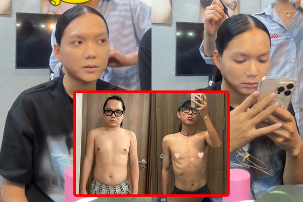 Trong loạt hình, nam TikToker sụt cân thấy rõ, da sạm đi, gương mặt có phần hốc hác. Anh cũng bị rụng nhiều tóc.
