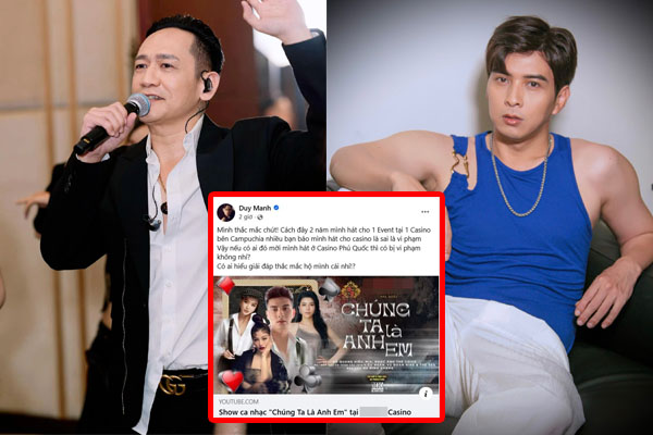 Vậy nếu có ai đó mời mình hát ở Casino Phú Quốc thì có bị vi phạm không nhỉ? Có ai hiểu giải đáp hộ mình cái”, Duy Mạnh chia sẻ.