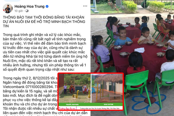 Tối 7/12, trên trang Facebook cá nhân, ông Trung bất ngờ thông báo tạm khóa tài khoản ngân hàng dùng để nhận hỗ trợ cho dự án Nuôi Em trong vòng 15 ngày.