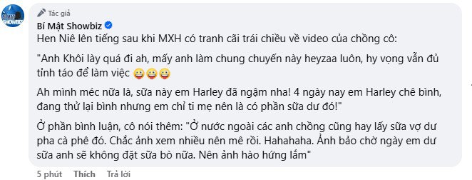 Tuy nhiên hành động này của anh gây ra nhiều tranh cãi trên các trang mạng xã hội. Nhiều người cho rằng việc lấy sữa của vợ cho bạn bè uống là điều khá nhạy cảm. Trong khi đó cũng có ý kiến lên tiếng bênh vực vợ chồng nàng Hậu. Hiện phía H’Hen Niê và ông xã đều chưa lên tiếng sau ồn ào.