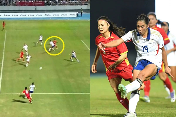 Đây là tình huống Bích Thùy bay người đánh đầu tung lưới đội tuyển nữ Philippines. Quyết định của trợ lý trọng tài thứ nhất Chanthavong Phutsavan sai hoàn toàn. Điều đáng nói là Bích Thùy vẫn còn đứng phía trên, cách rất xa cầu thủ phòng ngự cuối cùng của Philippines.