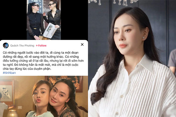Mới đây, diễn viên Quách Thu Phương bất ngờ đăng tải dòng trạng thái ẩn ý thu hút sự quan tâm của đông đảo khán giả. Cô chia sẻ clip bên Phương Oanh và nhắn gửi: “Có những người bước vào đời ta, đi cùng ta một đoạn đường rất đẹp, rồi rẽ sang một hướng khác. Có những điều tưởng chừng sẽ ở lại rất lâu, nhưng lại rời đi sớm hơn ta nghĩ. Đó không hẳn là mất mát, mà chỉ là một cuộc chia tay đúng lúc của duyên phận”. Dưới phần bình luận, Quách Thu Phương còn liên tục thả tim vào các bình luận của netizen động viên, khích lệ tới Phương Oanh.