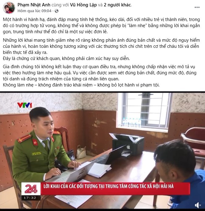 Người nhà của nam sinh bị đ:ánh t:ử v:o:ng ở Trung tâm Hải Hà
