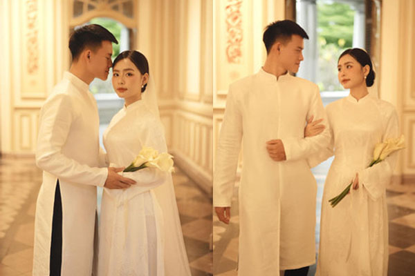 Vợ cầu thủ Thanh Nhàn gây ấn tượng với vẻ ngoài ngọt ngào, nữ tính, toát lên sức hút rất riêng. Nhan sắc của cô không quá sắc sảo mà chinh phục người đối diện bằng sự tinh khôi, nền nã và khí chất dịu dàng rất cuốn người nhìn.