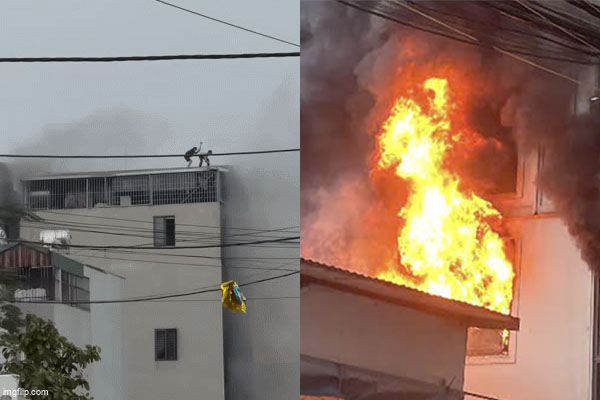 Nổi da gà trước khoảnh khắc 2 người đàn ông liều mình phá mái tôn mở đường sống trong đám cháy nhà 7 tầng ở Lĩnh Nam – Hà Nội