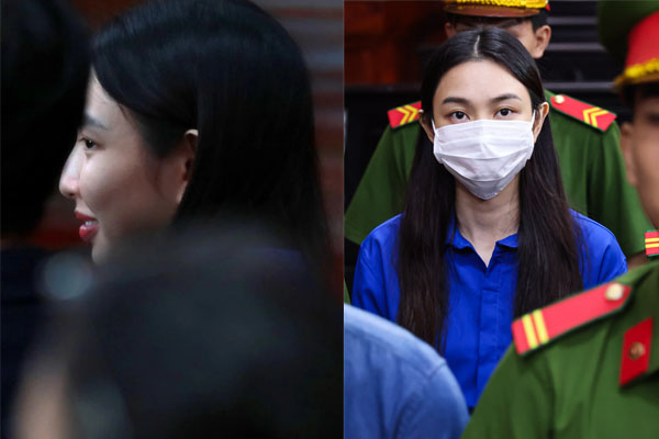 Trước đó, cô đeo khẩu trang kín mít từ lúc được áp giải đến ngồi chờ phiên toà diễn ra