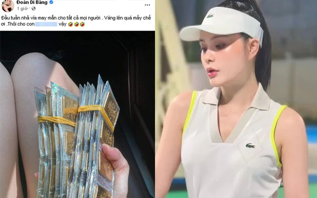 Đến tháng 5/2024, khi giá vàng miếng SJC đã lên mức 91,2 triệu đồng/lượng, mua vào 88,9 triệu đồng/lượng thì Đoàn Di Băng úp mở chuyện đem vàng đi bán chốt lời. Cô nói rằng mình vừa “chôm” của chồng mớ vàng miếng đi bán kiếm lãi để ra oai với bạn bè.