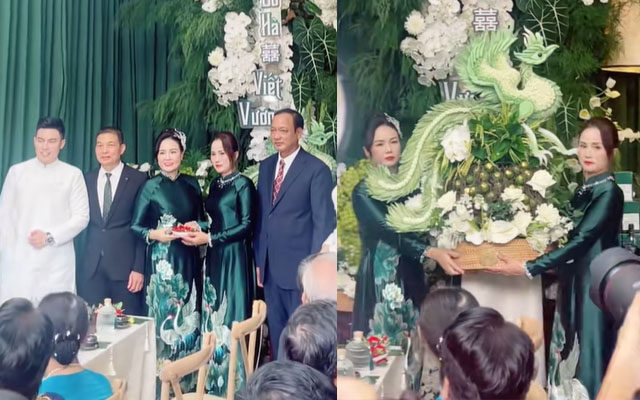 Cô dâu Đỗ Thị Hà và chú rể Nguyễn Viết Vương là một trong những cặp đôi nhận về nhiều sự quan tâm nhất hôm nay. Tại lễ nạp tài ở Thanh Hoá – quê nhà nàng Hậu, nhiều khoảnh khắc về gia đình 2 bên cũng viral trên MXH. Trong đó nhận về nhiều lời khen là 2 bà sui gia: Mẹ của Đỗ Hà và mẹ Viết Vương – phu nhân tập đoàn Sơn Hải.