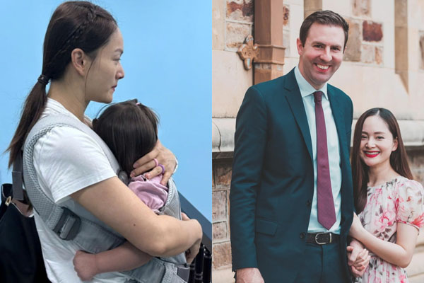 Diễn viên Lan Phương địu con gái Mia đến phiên tòa sơ thẩm xét xử vụ ly hôn giữa cô và ông xã người Anh, sáng 9/9.