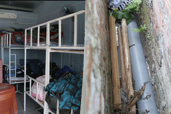 Trong khuôn viên trung tâm còn có một phòng làm bằng thùng container, được cho là nơi các “thầy” sinh hoạt và làm việc. Phía sau dãy phòng, một số gậy gỗ dài gần 1m bị vứt bỏ.