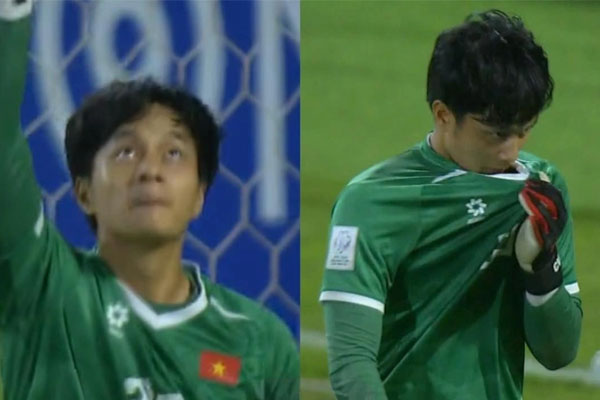 Cao Văn Bình thành công cản phá pha sút luân lưu của đội bạn
