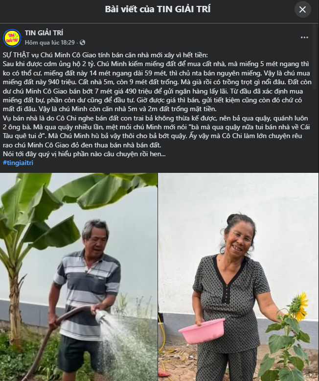 Sự thật ngỡ ngàng vụ Chú Minh Cô Giao tính bán căn nhà mới xây vì hết tiền