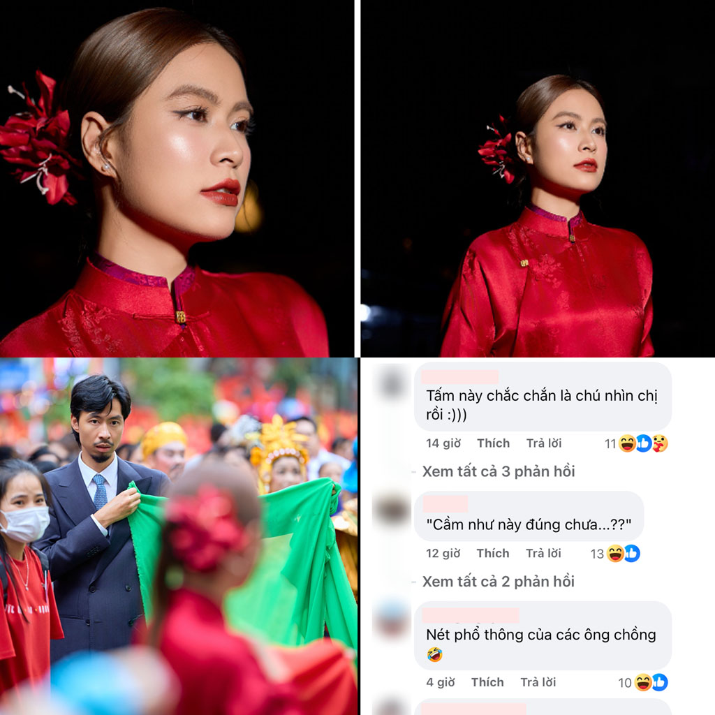 Trong bộ ảnh full HD vừa được FC Đen Vâu ghi lại, cặp đôi lại tiếp tục trở thành tâm điểm nhờ loạt tương tác ngọt ngào. Giữa hàng trăm nghệ sĩ khoác lên mình tà áo dài rực rỡ, khoảnh khắc Hoàng Thuỳ Linh tiến lại gần để chỉnh sửa từng thao tác cho Đen Vâu ngay lập tức gây bão mạng xã hội. Trong khi nữ ca sĩ bật chế độ “nóc nhà” chỉn chu, kiên nhẫn hướng dẫn, nam rapper lặng lẽ gật gù lắng nghe, ánh mắt dõi theo đầy chăm chú.