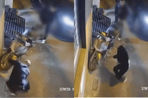 Ngay sau đó, một người đàn ông khoảng ngoài 30 tuổi, mặc quần áo màu đen bước xuống từ ô tô, cầm theo một vật nhọn rồi cúi xuống đâm hai lần vào lốp trước và lốp sau của chiếc xe máy, khiến cả hai lốp bị thủng. Sau khi thực hiện hành vi, người này quay trở lại ô tô và rời khỏi hiện trường.