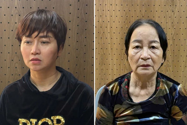 Thu (bên trái ảnh) lên kịch bản giả chết và thuyết phục mẹ là bà Thập (bên phải ảnh) tham gia. (Ảnh: Công an Thanh Hóa)