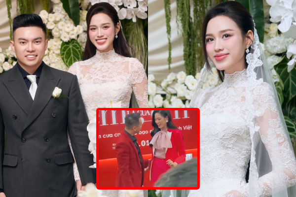 Trong ngày vui với chồng là doanh nhân Nguyễn Viết Vương, Hoa hậu Đỗ Hà vẫn luôn né tránh nụ hôn từ nửa kia. Người đẹp sinh năm 2001 nhận được nhiều lời khen ngợi khi giữ sự dịu dàng kín đáo ra dáng một Hoa hậu.